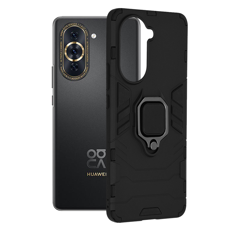 Husa de protectie Techsuit Shield Ring pentru Huawei Nova 10 Pro este fabricata din silicon TPU si plastic dur, avand amplasat pe partea din spate un inel de sustinere metalic ce are rol si de suport birou.