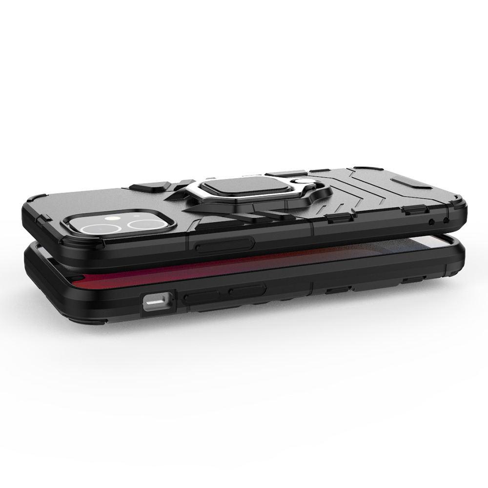 Husa de protectie Techsuit Shield Ring pentru iPhone 12 Mini este fabricata din silicon TPU si plastic dur, avand amplasat pe partea din spate un inel de sustinere metalic ce are rol si de suport birou.