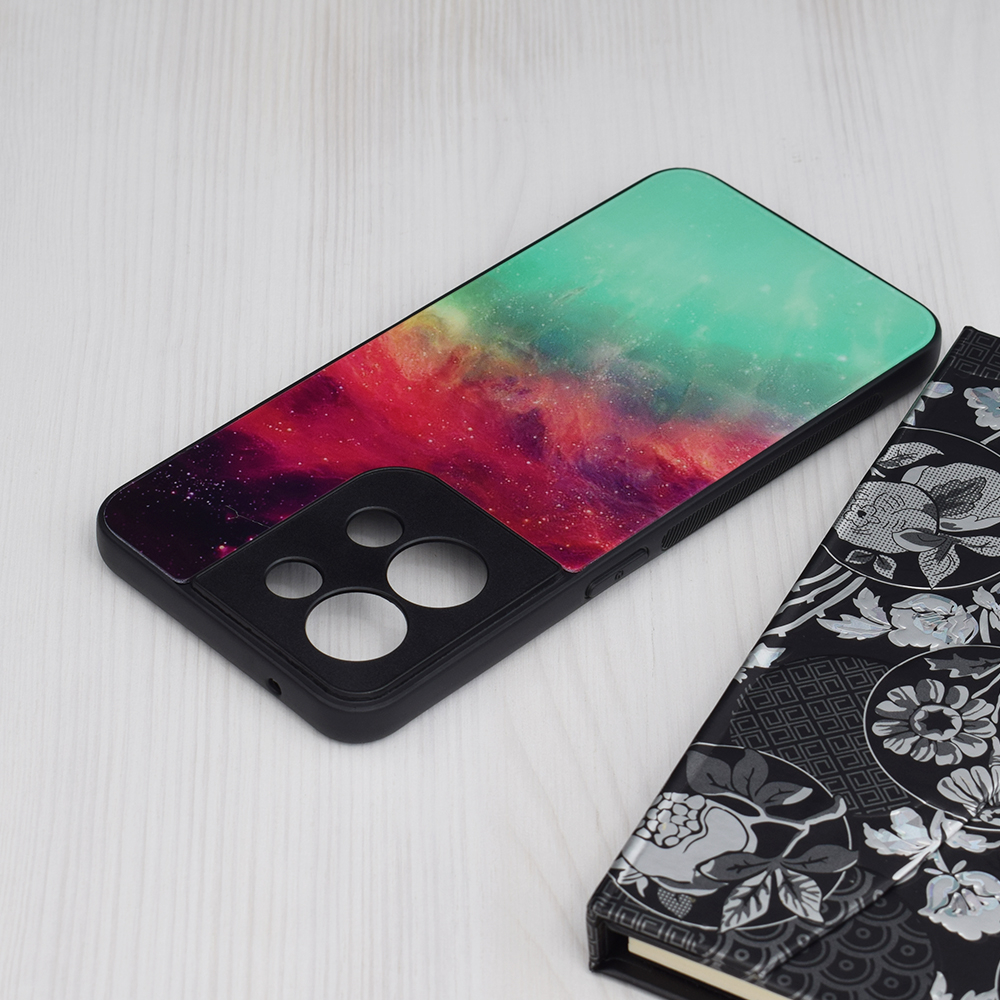 Husa are spatele lucios gratie insertiilor din sticla securizata ce au rolul de a preveni aparitia zgarieturilor si a proteja in caz de impact.